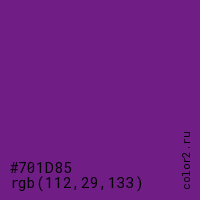 Цвет #701D85 в цветовой модели RGB обозначается тремя октетами (112, 29, 133) в десятичном формате и #701D85 в шестнадцатиричном (hex) формате, которые являются интенсивностью красного 112 (hex 70), интенсивность зелёного 29 (hex 1D) и интенсивность синего 133 (hex 85).