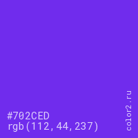 Цвет #702CED в цветовой модели RGB обозначается тремя октетами (112, 44, 237) в десятичном формате и #702CED в шестнадцатиричном (hex) формате, которые являются интенсивностью красного 112 (hex 70), интенсивность зелёного 44 (hex 2C) и интенсивность синего 237 (hex ED).