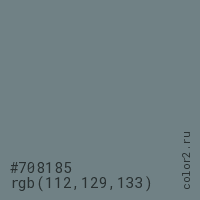 Цвет #708185 в цветовой модели RGB обозначается тремя октетами (112, 129, 133) в десятичном формате и #708185 в шестнадцатиричном (hex) формате, которые являются интенсивностью красного 112 (hex 70), интенсивность зелёного 129 (hex 81) и интенсивность синего 133 (hex 85).