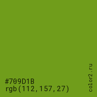 Цвет #709D1B в цветовой модели RGB обозначается тремя октетами (112, 157, 27) в десятичном формате и #709D1B в шестнадцатиричном (hex) формате, которые являются интенсивностью красного 112 (hex 70), интенсивность зелёного 157 (hex 9D) и интенсивность синего 27 (hex 1B).