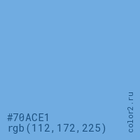 Цвет #70ACE1 в цветовой модели RGB обозначается тремя октетами (112, 172, 225) в десятичном формате и #70ACE1 в шестнадцатиричном (hex) формате, которые являются интенсивностью красного 112 (hex 70), интенсивность зелёного 172 (hex AC) и интенсивность синего 225 (hex E1).