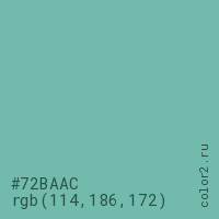 Цвет #72BAAC в цветовой модели RGB обозначается тремя октетами (114, 186, 172) в десятичном формате и #72BAAC в шестнадцатиричном (hex) формате, которые являются интенсивностью красного 114 (hex 72), интенсивность зелёного 186 (hex BA) и интенсивность синего 172 (hex AC).