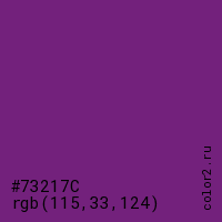 Цвет #73217C в цветовой модели RGB обозначается тремя октетами (115, 33, 124) в десятичном формате и #73217C в шестнадцатиричном (hex) формате, которые являются интенсивностью красного 115 (hex 73), интенсивность зелёного 33 (hex 21) и интенсивность синего 124 (hex 7C).