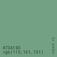 Цвет #73A183 в цветовой модели RGB обозначается тремя октетами (115, 161, 131) в десятичном формате и #73A183 в шестнадцатиричном (hex) формате, которые являются интенсивностью красного 115 (hex 73), интенсивность зелёного 161 (hex A1) и интенсивность синего 131 (hex 83).