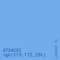 Цвет #73ACEC в цветовой модели RGB обозначается тремя октетами (115, 172, 236) в десятичном формате и #73ACEC в шестнадцатиричном (hex) формате, которые являются интенсивностью красного 115 (hex 73), интенсивность зелёного 172 (hex AC) и интенсивность синего 236 (hex EC).