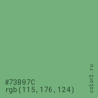 Цвет #73B07C в цветовой модели RGB обозначается тремя октетами (115, 176, 124) в десятичном формате и #73B07C в шестнадцатиричном (hex) формате, которые являются интенсивностью красного 115 (hex 73), интенсивность зелёного 176 (hex B0) и интенсивность синего 124 (hex 7C).