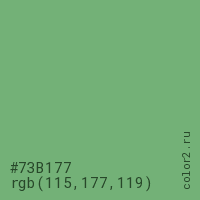 Цвет #73B177 в цветовой модели RGB обозначается тремя октетами (115, 177, 119) в десятичном формате и #73B177 в шестнадцатиричном (hex) формате, которые являются интенсивностью красного 115 (hex 73), интенсивность зелёного 177 (hex B1) и интенсивность синего 119 (hex 77).