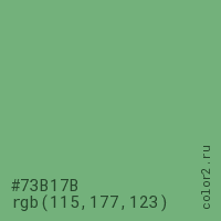 Цвет #73B17B в цветовой модели RGB обозначается тремя октетами (115, 177, 123) в десятичном формате и #73B17B в шестнадцатиричном (hex) формате, которые являются интенсивностью красного 115 (hex 73), интенсивность зелёного 177 (hex B1) и интенсивность синего 123 (hex 7B).