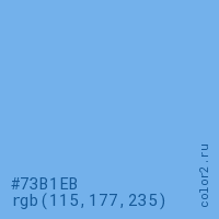 Цвет #73B1EB в цветовой модели RGB обозначается тремя октетами (115, 177, 235) в десятичном формате и #73B1EB в шестнадцатиричном (hex) формате, которые являются интенсивностью красного 115 (hex 73), интенсивность зелёного 177 (hex B1) и интенсивность синего 235 (hex EB).