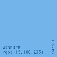 Цвет #73B4EB в цветовой модели RGB обозначается тремя октетами (115, 180, 235) в десятичном формате и #73B4EB в шестнадцатиричном (hex) формате, которые являются интенсивностью красного 115 (hex 73), интенсивность зелёного 180 (hex B4) и интенсивность синего 235 (hex EB).