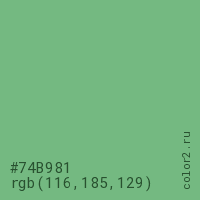 Цвет #74B981 в цветовой модели RGB обозначается тремя октетами (116, 185, 129) в десятичном формате и #74B981 в шестнадцатиричном (hex) формате, которые являются интенсивностью красного 116 (hex 74), интенсивность зелёного 185 (hex B9) и интенсивность синего 129 (hex 81).