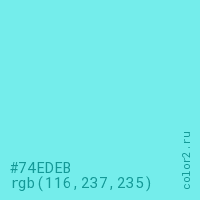 Цвет #74EDEB в цветовой модели RGB обозначается тремя октетами (116, 237, 235) в десятичном формате и #74EDEB в шестнадцатиричном (hex) формате, которые являются интенсивностью красного 116 (hex 74), интенсивность зелёного 237 (hex ED) и интенсивность синего 235 (hex EB).