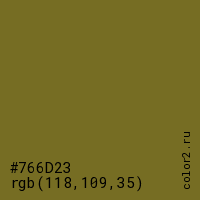 Цвет #766D23 в цветовой модели RGB обозначается тремя октетами (118, 109, 35) в десятичном формате и #766D23 в шестнадцатиричном (hex) формате, которые являются интенсивностью красного 118 (hex 76), интенсивность зелёного 109 (hex 6D) и интенсивность синего 35 (hex 23).