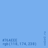 Цвет #76AEEE в цветовой модели RGB обозначается тремя октетами (118, 174, 238) в десятичном формате и #76AEEE в шестнадцатиричном (hex) формате, которые являются интенсивностью красного 118 (hex 76), интенсивность зелёного 174 (hex AE) и интенсивность синего 238 (hex EE).