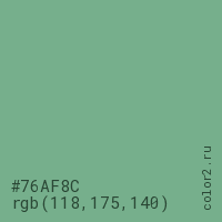 Цвет #76AF8C в цветовой модели RGB обозначается тремя октетами (118, 175, 140) в десятичном формате и #76AF8C в шестнадцатиричном (hex) формате, которые являются интенсивностью красного 118 (hex 76), интенсивность зелёного 175 (hex AF) и интенсивность синего 140 (hex 8C).