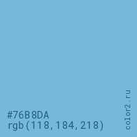 Цвет #76B8DA в цветовой модели RGB обозначается тремя октетами (118, 184, 218) в десятичном формате и #76B8DA в шестнадцатиричном (hex) формате, которые являются интенсивностью красного 118 (hex 76), интенсивность зелёного 184 (hex B8) и интенсивность синего 218 (hex DA).