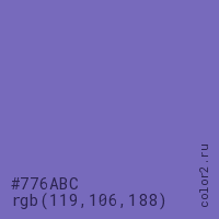 Цвет #776ABC в цветовой модели RGB обозначается тремя октетами (119, 106, 188) в десятичном формате и #776ABC в шестнадцатиричном (hex) формате, которые являются интенсивностью красного 119 (hex 77), интенсивность зелёного 106 (hex 6A) и интенсивность синего 188 (hex BC).