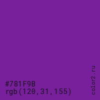 Цвет #781F9B в цветовой модели RGB обозначается тремя октетами (120, 31, 155) в десятичном формате и #781F9B в шестнадцатиричном (hex) формате, которые являются интенсивностью красного 120 (hex 78), интенсивность зелёного 31 (hex 1F) и интенсивность синего 155 (hex 9B).