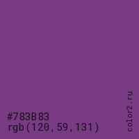 Цвет #783B83 в цветовой модели RGB обозначается тремя октетами (120, 59, 131) в десятичном формате и #783B83 в шестнадцатиричном (hex) формате, которые являются интенсивностью красного 120 (hex 78), интенсивность зелёного 59 (hex 3B) и интенсивность синего 131 (hex 83).