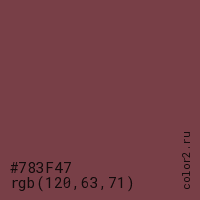 Цвет #783F47 в цветовой модели RGB обозначается тремя октетами (120, 63, 71) в десятичном формате и #783F47 в шестнадцатиричном (hex) формате, которые являются интенсивностью красного 120 (hex 78), интенсивность зелёного 63 (hex 3F) и интенсивность синего 71 (hex 47).