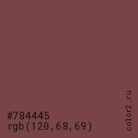Цвет #784445 в цветовой модели RGB обозначается тремя октетами (120, 68, 69) в десятичном формате и #784445 в шестнадцатиричном (hex) формате, которые являются интенсивностью красного 120 (hex 78), интенсивность зелёного 68 (hex 44) и интенсивность синего 69 (hex 45).