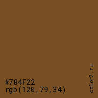 Цвет #784F22 в цветовой модели RGB обозначается тремя октетами (120, 79, 34) в десятичном формате и #784F22 в шестнадцатиричном (hex) формате, которые являются интенсивностью красного 120 (hex 78), интенсивность зелёного 79 (hex 4F) и интенсивность синего 34 (hex 22).