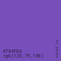 Цвет #784FBA в цветовой модели RGB обозначается тремя октетами (120, 79, 186) в десятичном формате и #784FBA в шестнадцатиричном (hex) формате, которые являются интенсивностью красного 120 (hex 78), интенсивность зелёного 79 (hex 4F) и интенсивность синего 186 (hex BA).