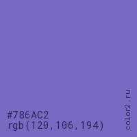 Цвет #786AC2 в цветовой модели RGB обозначается тремя октетами (120, 106, 194) в десятичном формате и #786AC2 в шестнадцатиричном (hex) формате, которые являются интенсивностью красного 120 (hex 78), интенсивность зелёного 106 (hex 6A) и интенсивность синего 194 (hex C2).