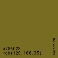 Цвет #786C23 в цветовой модели RGB обозначается тремя октетами (120, 108, 35) в десятичном формате и #786C23 в шестнадцатиричном (hex) формате, которые являются интенсивностью красного 120 (hex 78), интенсивность зелёного 108 (hex 6C) и интенсивность синего 35 (hex 23).