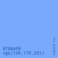 Цвет #78AAFB в цветовой модели RGB обозначается тремя октетами (120, 170, 251) в десятичном формате и #78AAFB в шестнадцатиричном (hex) формате, которые являются интенсивностью красного 120 (hex 78), интенсивность зелёного 170 (hex AA) и интенсивность синего 251 (hex FB).