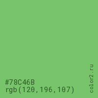 Цвет #78C46B в цветовой модели RGB обозначается тремя октетами (120, 196, 107) в десятичном формате и #78C46B в шестнадцатиричном (hex) формате, которые являются интенсивностью красного 120 (hex 78), интенсивность зелёного 196 (hex C4) и интенсивность синего 107 (hex 6B).