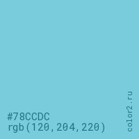 Цвет #78CCDC в цветовой модели RGB обозначается тремя октетами (120, 204, 220) в десятичном формате и #78CCDC в шестнадцатиричном (hex) формате, которые являются интенсивностью красного 120 (hex 78), интенсивность зелёного 204 (hex CC) и интенсивность синего 220 (hex DC).