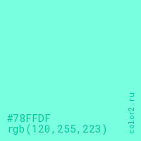 Цвет #78FFDF в цветовой модели RGB обозначается тремя октетами (120, 255, 223) в десятичном формате и #78FFDF в шестнадцатиричном (hex) формате, которые являются интенсивностью красного 120 (hex 78), интенсивность зелёного 255 (hex FF) и интенсивность синего 223 (hex DF).