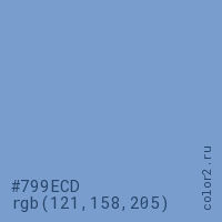 Цвет #799ECD в цветовой модели RGB обозначается тремя октетами (121, 158, 205) в десятичном формате и #799ECD в шестнадцатиричном (hex) формате, которые являются интенсивностью красного 121 (hex 79), интенсивность зелёного 158 (hex 9E) и интенсивность синего 205 (hex CD).