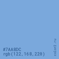 Цвет #7AA8DC в цветовой модели RGB обозначается тремя октетами (122, 168, 220) в десятичном формате и #7AA8DC в шестнадцатиричном (hex) формате, которые являются интенсивностью красного 122 (hex 7A), интенсивность зелёного 168 (hex A8) и интенсивность синего 220 (hex DC).