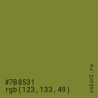| RGB | rgb(123, 133, 49) |