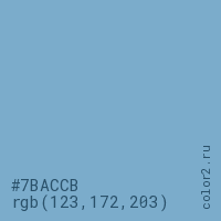 Цвет #7BACCB в цветовой модели RGB обозначается тремя октетами (123, 172, 203) в десятичном формате и #7BACCB в шестнадцатиричном (hex) формате, которые являются интенсивностью красного 123 (hex 7B), интенсивность зелёного 172 (hex AC) и интенсивность синего 203 (hex CB).