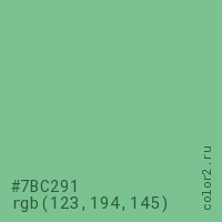 Цвет #7BC291 в цветовой модели RGB обозначается тремя октетами (123, 194, 145) в десятичном формате и #7BC291 в шестнадцатиричном (hex) формате, которые являются интенсивностью красного 123 (hex 7B), интенсивность зелёного 194 (hex C2) и интенсивность синего 145 (hex 91).