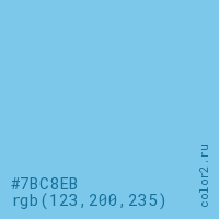 Цвет #7BC8EB в цветовой модели RGB обозначается тремя октетами (123, 200, 235) в десятичном формате и #7BC8EB в шестнадцатиричном (hex) формате, которые являются интенсивностью красного 123 (hex 7B), интенсивность зелёного 200 (hex C8) и интенсивность синего 235 (hex EB).