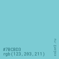 Цвет #7BCBD3 в цветовой модели RGB обозначается тремя октетами (123, 203, 211) в десятичном формате и #7BCBD3 в шестнадцатиричном (hex) формате, которые являются интенсивностью красного 123 (hex 7B), интенсивность зелёного 203 (hex CB) и интенсивность синего 211 (hex D3).