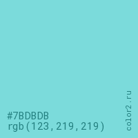 Цвет #7BDBDB в цветовой модели RGB обозначается тремя октетами (123, 219, 219) в десятичном формате и #7BDBDB в шестнадцатиричном (hex) формате, которые являются интенсивностью красного 123 (hex 7B), интенсивность зелёного 219 (hex DB) и интенсивность синего 219 (hex DB).