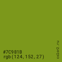 Цвет #7C981B в цветовой модели RGB обозначается тремя октетами (124, 152, 27) в десятичном формате и #7C981B в шестнадцатиричном (hex) формате, которые являются интенсивностью красного 124 (hex 7C), интенсивность зелёного 152 (hex 98) и интенсивность синего 27 (hex 1B).