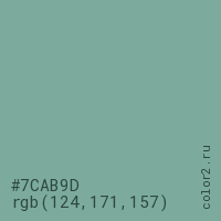 Цвет #7CAB9D в цветовой модели RGB обозначается тремя октетами (124, 171, 157) в десятичном формате и #7CAB9D в шестнадцатиричном (hex) формате, которые являются интенсивностью красного 124 (hex 7C), интенсивность зелёного 171 (hex AB) и интенсивность синего 157 (hex 9D).