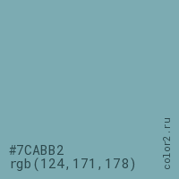 Цвет #7CABB2 в цветовой модели RGB обозначается тремя октетами (124, 171, 178) в десятичном формате и #7CABB2 в шестнадцатиричном (hex) формате, которые являются интенсивностью красного 124 (hex 7C), интенсивность зелёного 171 (hex AB) и интенсивность синего 178 (hex B2).