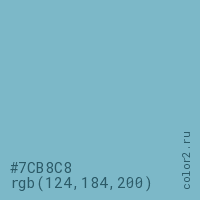 Цвет #7CB8C8 в цветовой модели RGB обозначается тремя октетами (124, 184, 200) в десятичном формате и #7CB8C8 в шестнадцатиричном (hex) формате, которые являются интенсивностью красного 124 (hex 7C), интенсивность зелёного 184 (hex B8) и интенсивность синего 200 (hex C8).