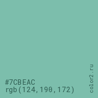 Цвет #7CBEAC в цветовой модели RGB обозначается тремя октетами (124, 190, 172) в десятичном формате и #7CBEAC в шестнадцатиричном (hex) формате, которые являются интенсивностью красного 124 (hex 7C), интенсивность зелёного 190 (hex BE) и интенсивность синего 172 (hex AC).