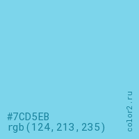 Цвет #7CD5EB в цветовой модели RGB обозначается тремя октетами (124, 213, 235) в десятичном формате и #7CD5EB в шестнадцатиричном (hex) формате, которые являются интенсивностью красного 124 (hex 7C), интенсивность зелёного 213 (hex D5) и интенсивность синего 235 (hex EB).