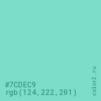Цвет #7CDEC9 в цветовой модели RGB обозначается тремя октетами (124, 222, 201) в десятичном формате и #7CDEC9 в шестнадцатиричном (hex) формате, которые являются интенсивностью красного 124 (hex 7C), интенсивность зелёного 222 (hex DE) и интенсивность синего 201 (hex C9).