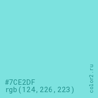 Цвет #7CE2DF в цветовой модели RGB обозначается тремя октетами (124, 226, 223) в десятичном формате и #7CE2DF в шестнадцатиричном (hex) формате, которые являются интенсивностью красного 124 (hex 7C), интенсивность зелёного 226 (hex E2) и интенсивность синего 223 (hex DF).