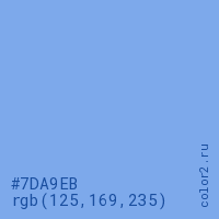 Цвет #7DA9EB в цветовой модели RGB обозначается тремя октетами (125, 169, 235) в десятичном формате и #7DA9EB в шестнадцатиричном (hex) формате, которые являются интенсивностью красного 125 (hex 7D), интенсивность зелёного 169 (hex A9) и интенсивность синего 235 (hex EB).
